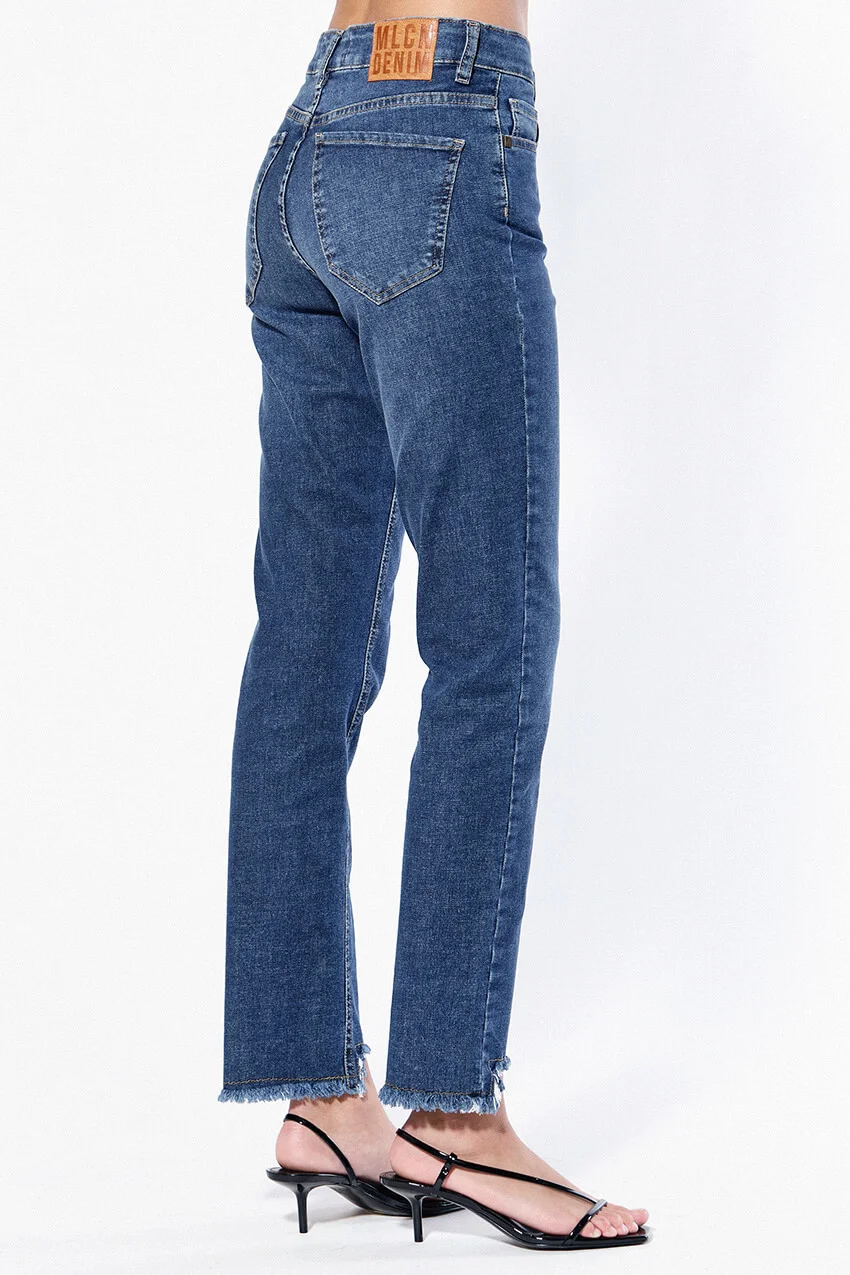 Pantalón de jean tiro medio, de largo arriba del tobillo.